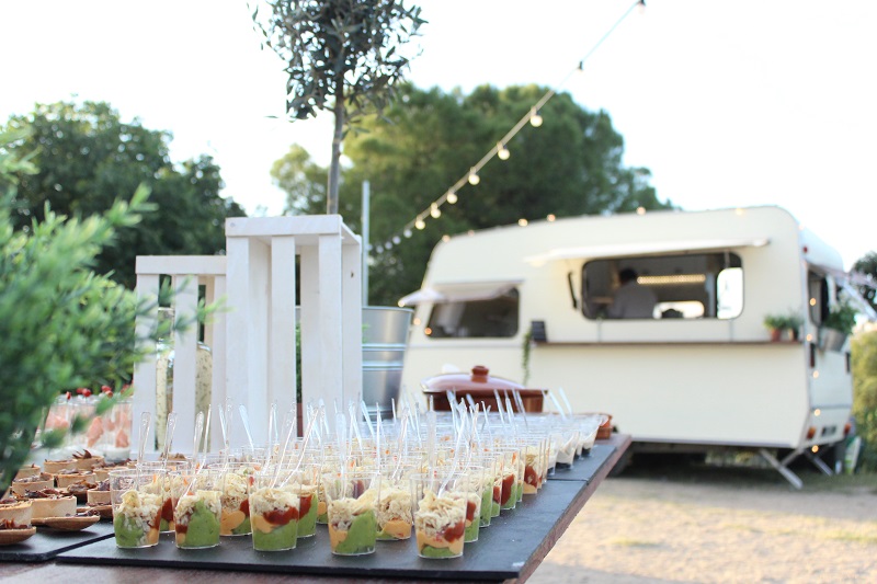 MENÚ BASE: Incluye: Estación “Show cooking Arroces», Estación “Show cooking Huevos Estrellados», Estación «Bufett», Estación “Show cooking Mini Burgers» (Food Truck), Estación de Postres, Estación Bar durante la degustación del almuerzo o cena, Estación de Cafetería, personal cualificado, todo el menaje necesario, transporte en la comarca de Barcelona y alrededores, decoración, montaje, limpieza y mobiliario (Estaciones y mesas altas de cocktail con mantel blanco). Todas las Estaciones tienen servicio de camareros.